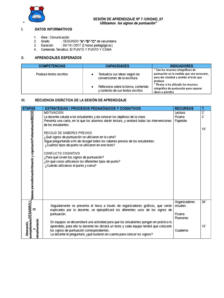 III. SECUENCIA DIDÁCTICA DE LA SESIÓN DE APRENDIZAJE