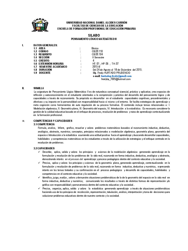 La asignatura de Pensamiento Lógico Matemático II es de naturaleza conceptual vivencial, práctico y aplicativo; crea espacios de