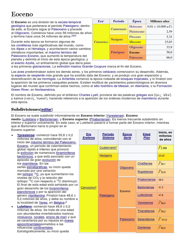 medio (Lutetiano y Bartoniense), y Eoceno superior (Priaboniense). Es menos frecuente subdividirlo en