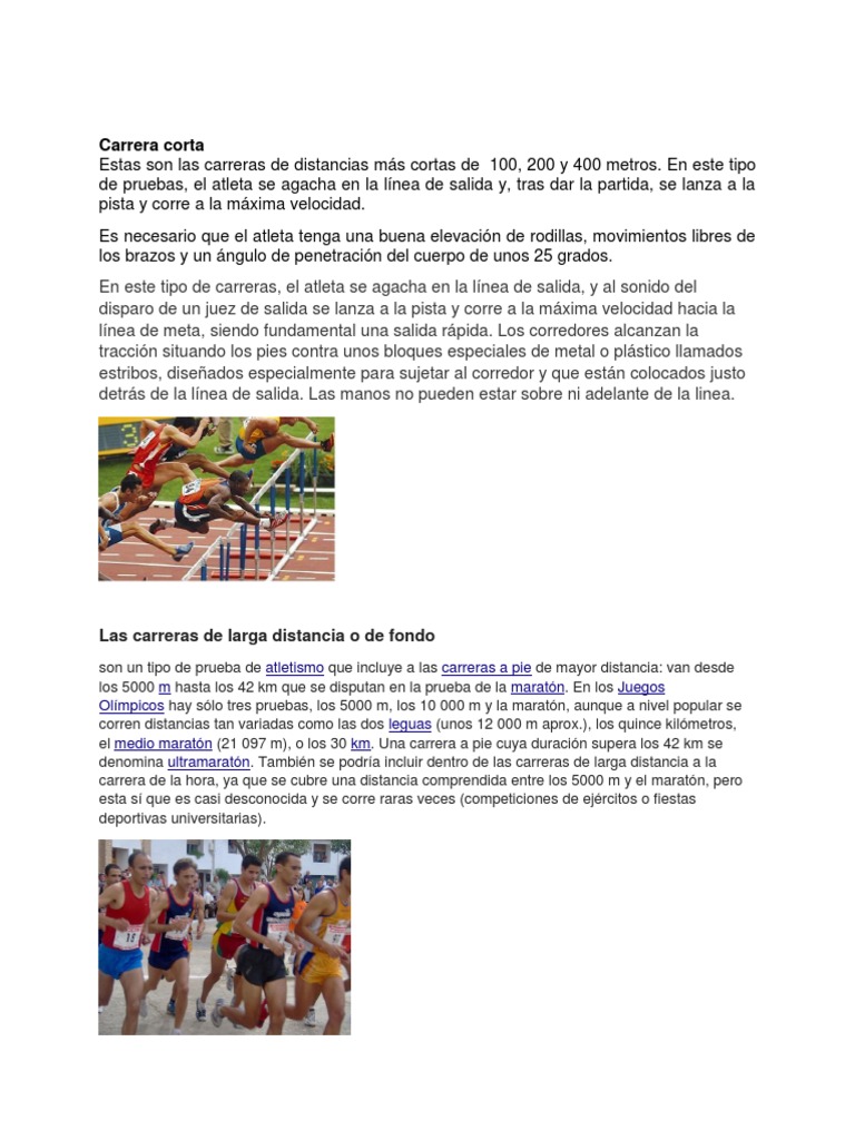 Estas son las carreras de distancias más cortas de 100, 200 y 400 metros. En este tipo