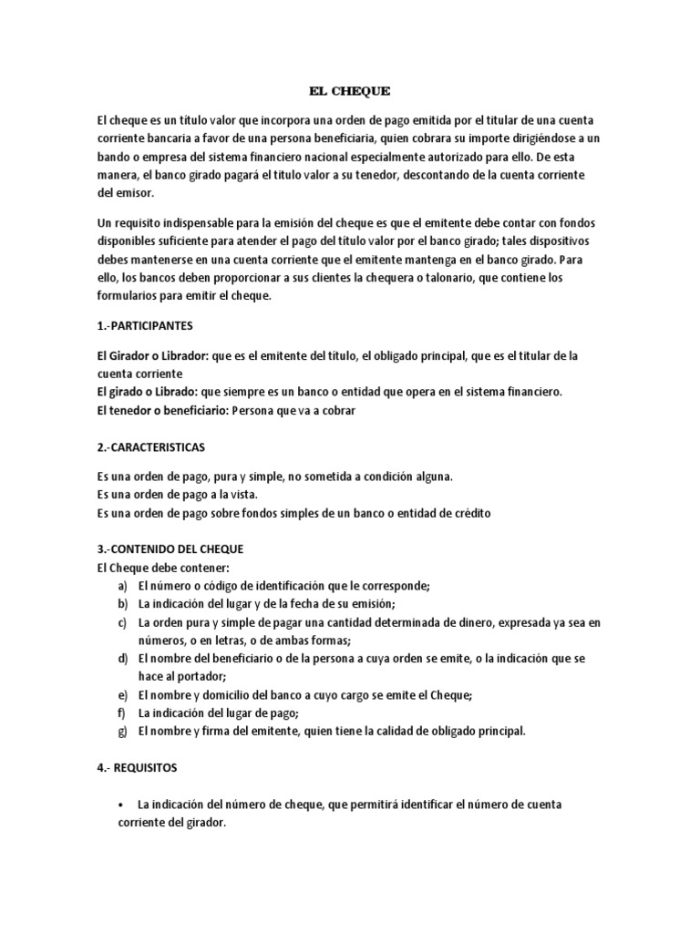 El cheque es un título valor que incorpora una orden de pago emitida por el titular de una cuenta