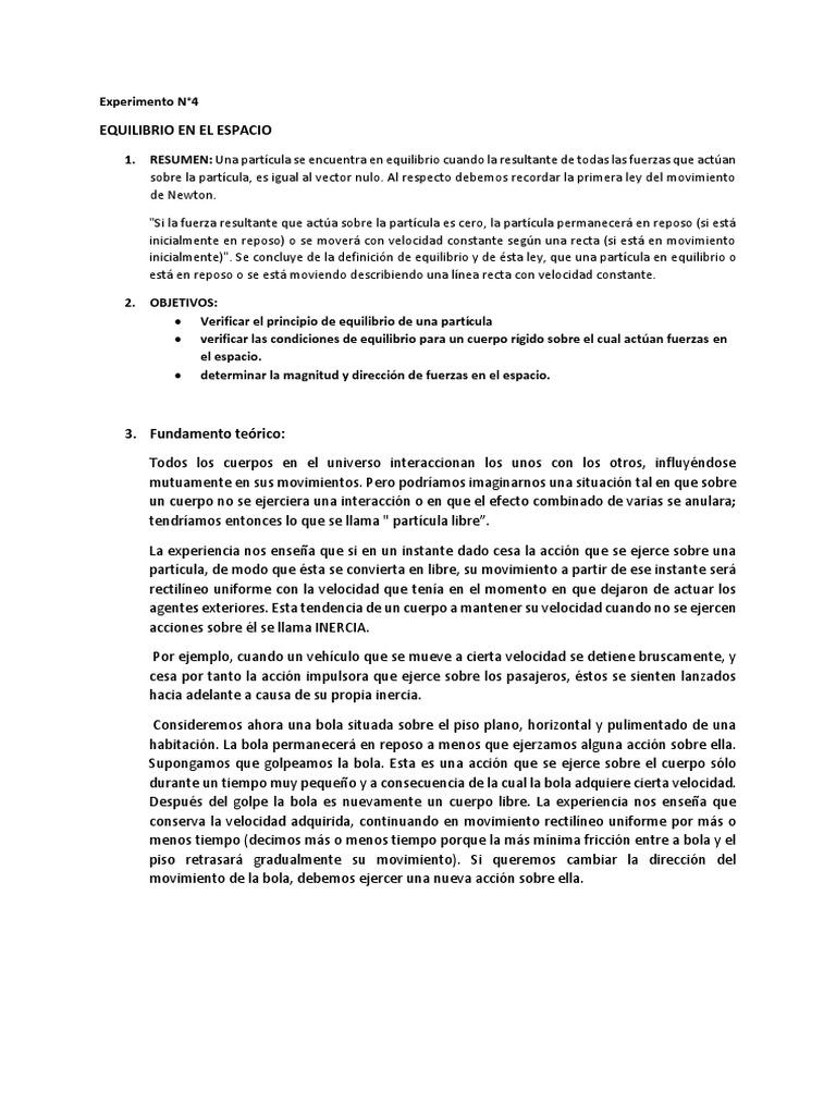 1. RESUMEN: Una partícula se encuentra en equilibrio cuando la resultante de todas las fuerzas que actúan