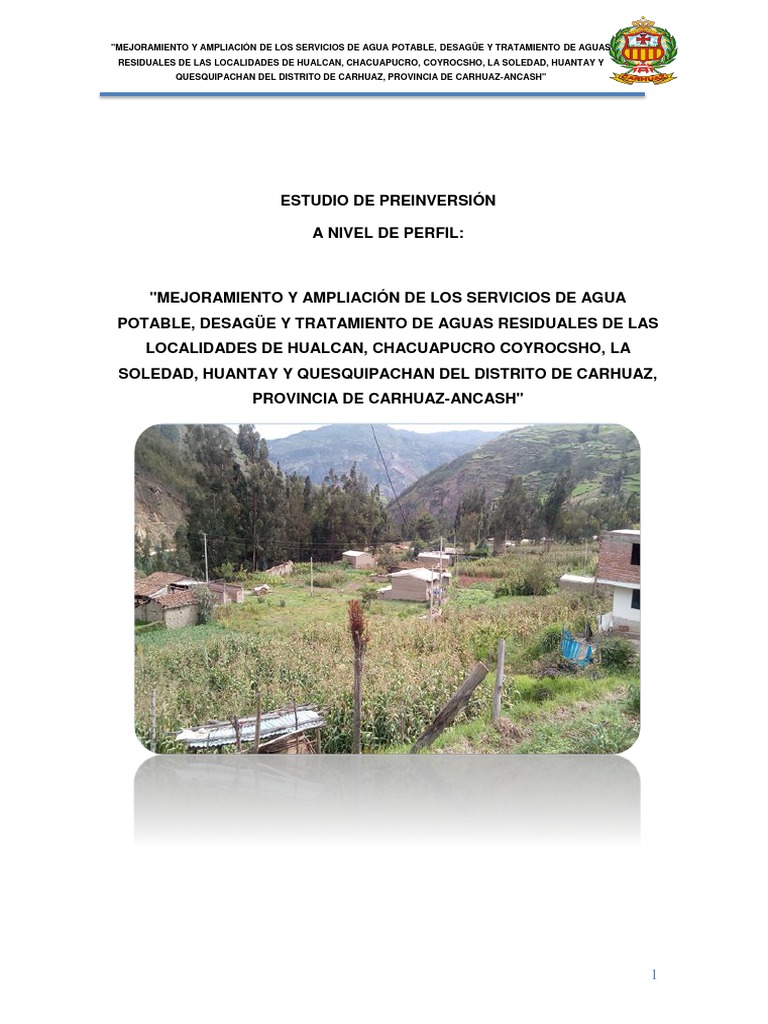 RESIDUALES DE LAS LOCALIDADES DE HUALCAN, CHACUAPUCRO, COYROCSHO, LA SOLEDAD, HUANTAY Y