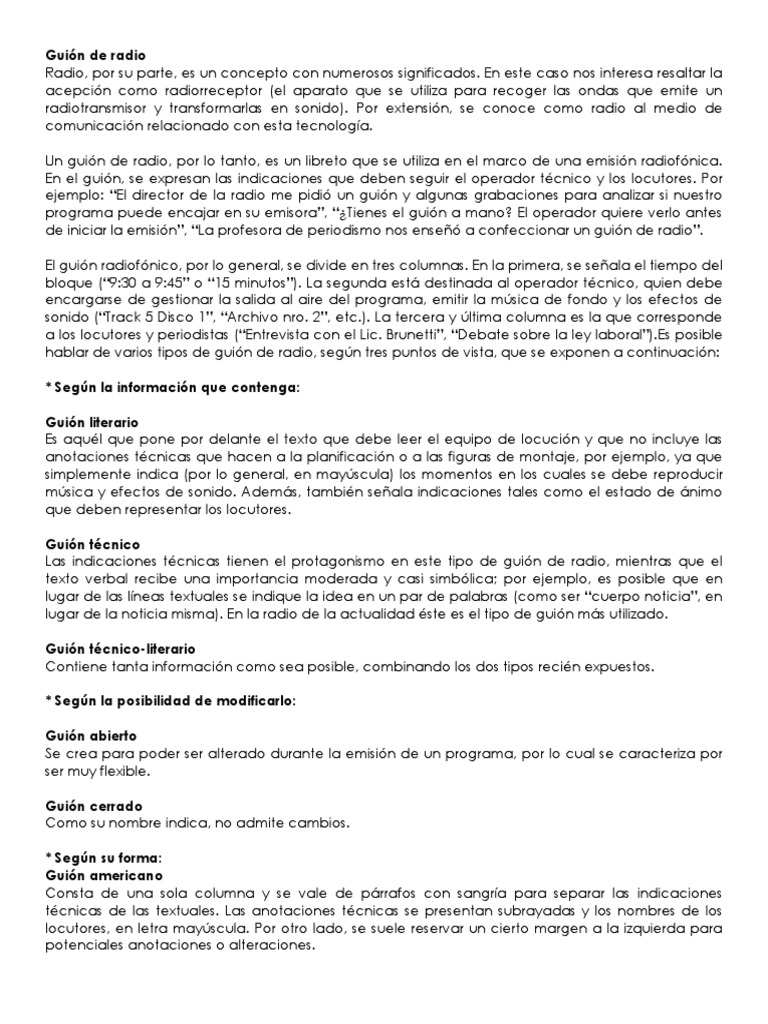 El guión radiofónico es un texto que contiene todos los detalles necesarios para la realización de un