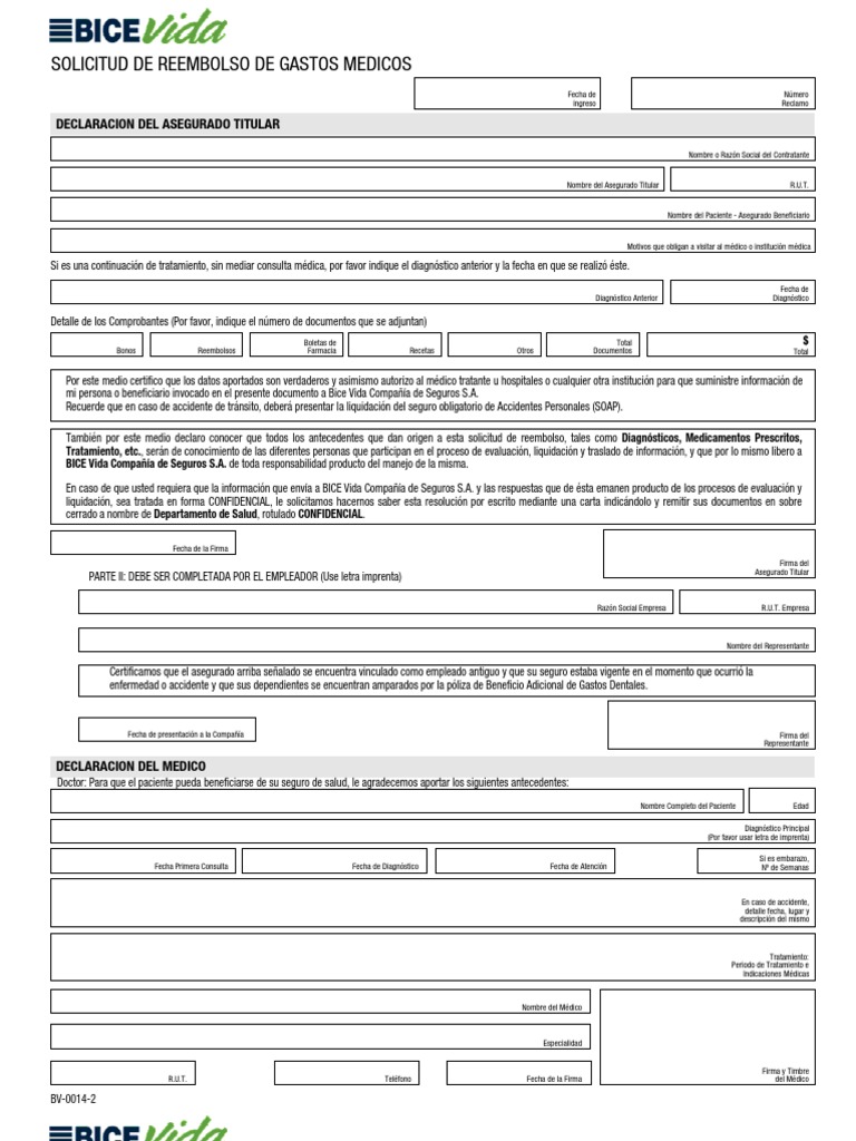 2. El asegurado deberá presentar a la Compañía una Solicitud de Reembolso por cada persona de su grupo familiar que haya incurrido en gastos médicos; es decir