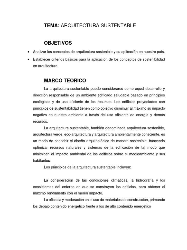 Analizar los conceptos de arquitectura sostenible y su aplicación en nuestro país.