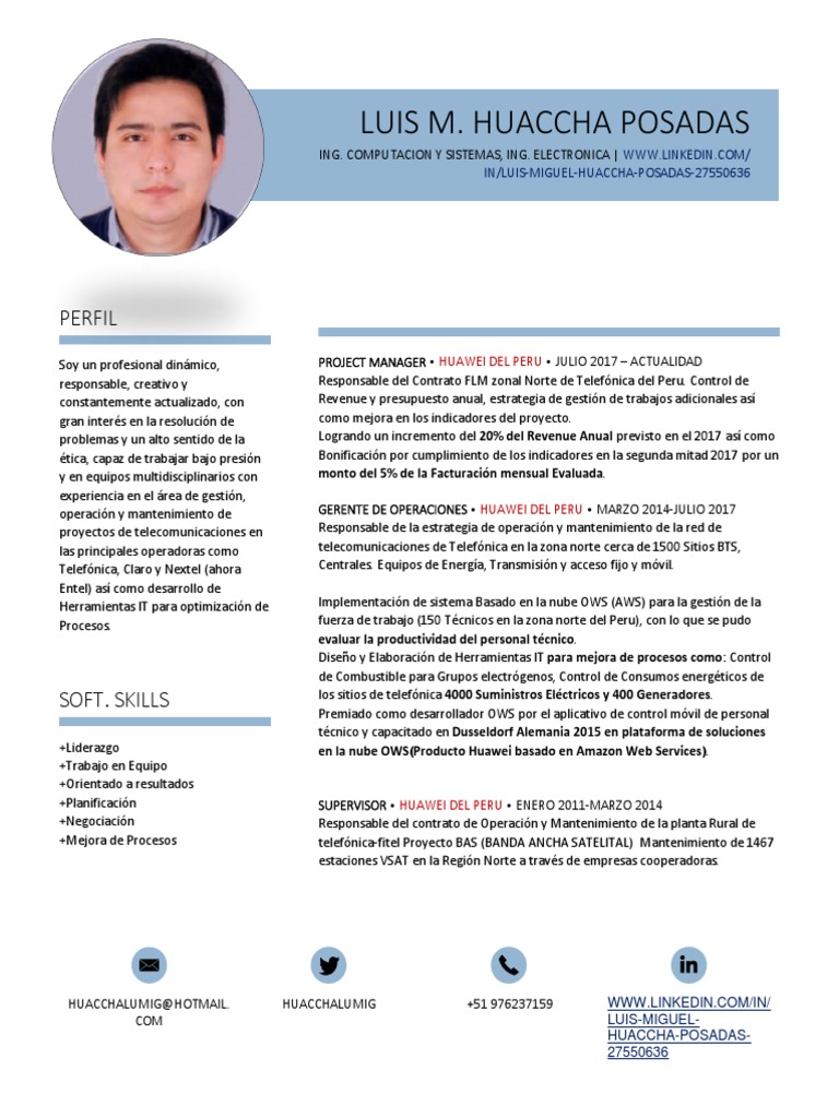HUACCHALUMIG@HOTMAIL. HUACCHALUMIG +51 976237159 LINKEDIN URL