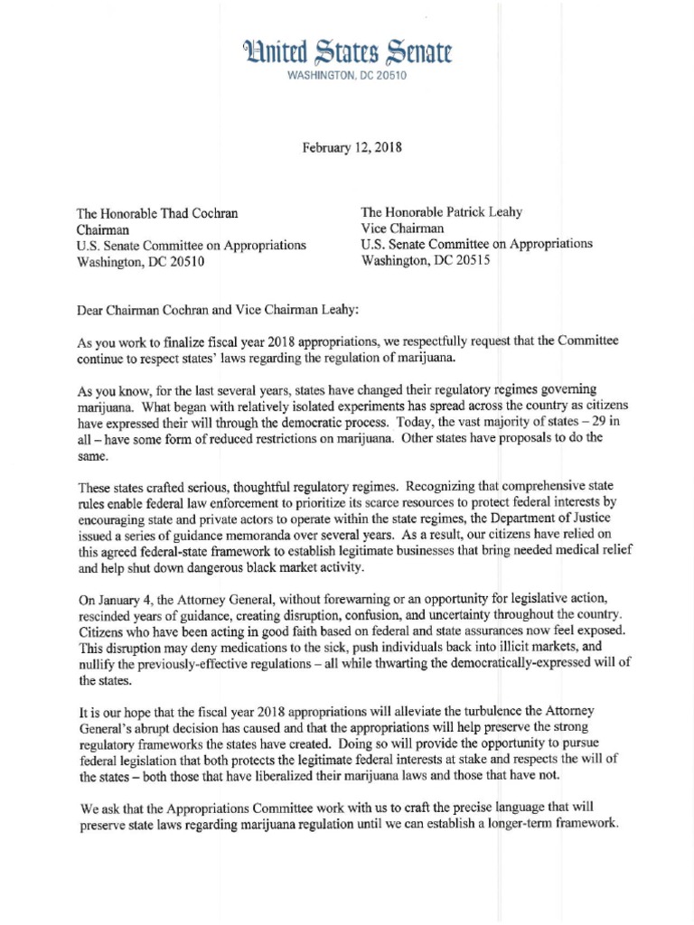 Bipartisan Appropriations Letter on Marijuana Enfo...