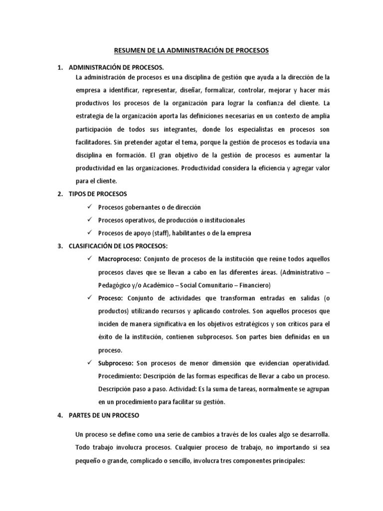RESUMEN DE LA ADMINISTRACIÓN DE PROCESOS