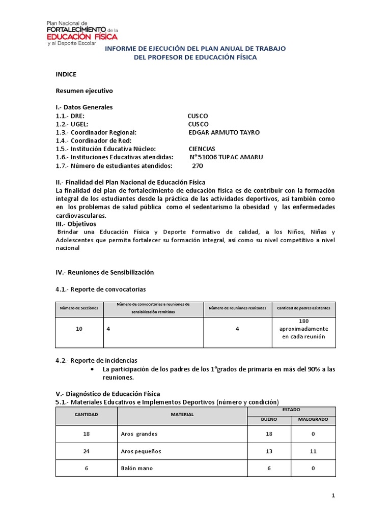 1.6.- Instituciones Educativas atendidas: N° 51006 TUPAC AMARU