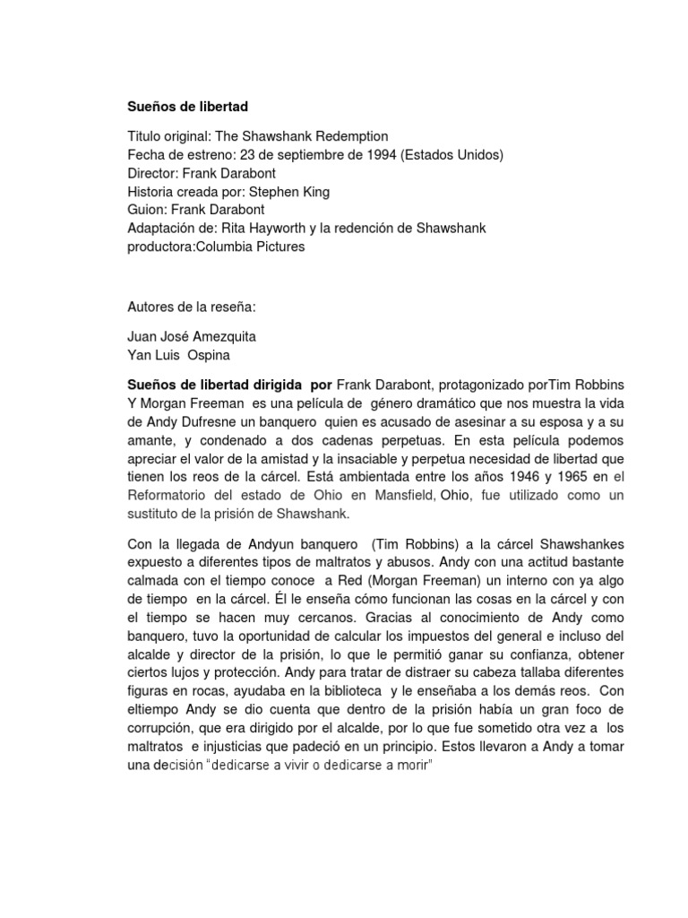 de Andy Dufresne un banquero quien es acusado de asesinar a su esposa y a su