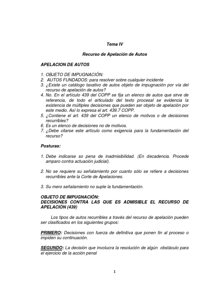 Los tipos de autos recurribles a través del recurso de apelación pueden