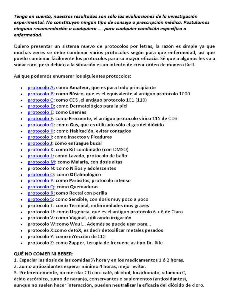 ● 10 ml de CDS 3000 ppm (o 100 ml de CDS 300 ppm) + 1 litro de agua, por día.