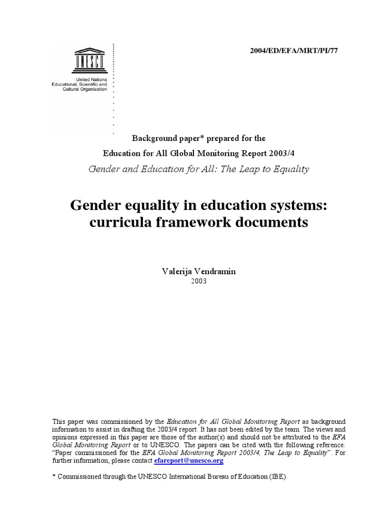 “Paper commissioned for the EFA Global Monitoring Report 2003/4, The Leap to Equality”. For