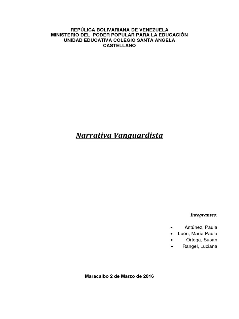 En el siguiente trabajo se presentara el concepto de Vanguardismo y de Narrativa