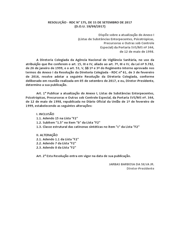 RESOLUÇÃO - RDC N° 175, DE 15 DE SETEMBRO DE 2017