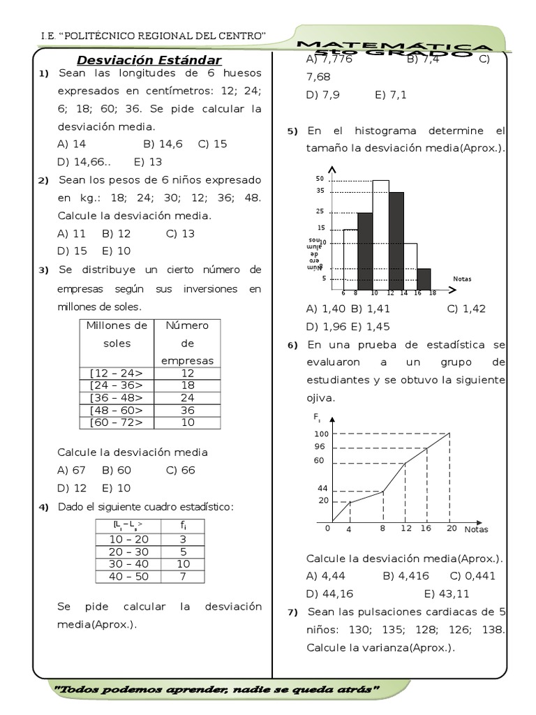 desviación estándar(Aprox.). D) 3,61 E) 3,45