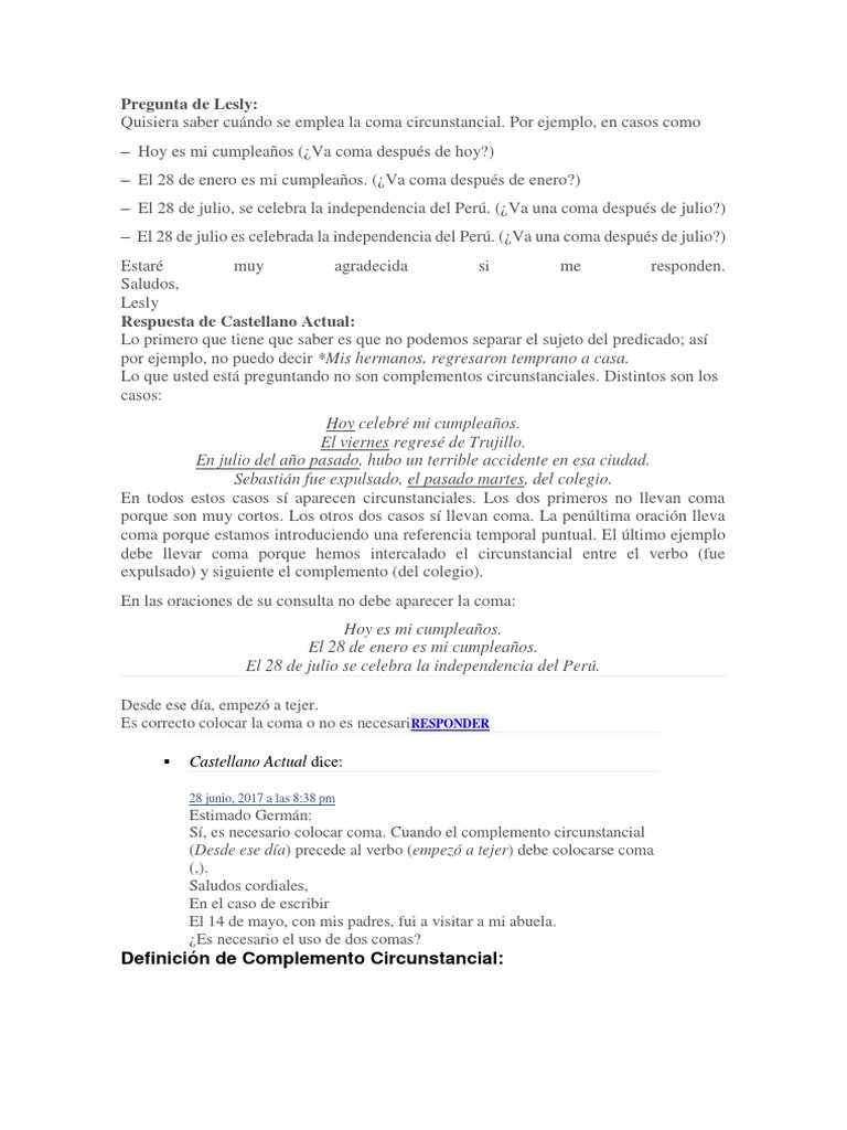 coma porque estamos introduciendo una referencia temporal puntual. El último ejemplo
