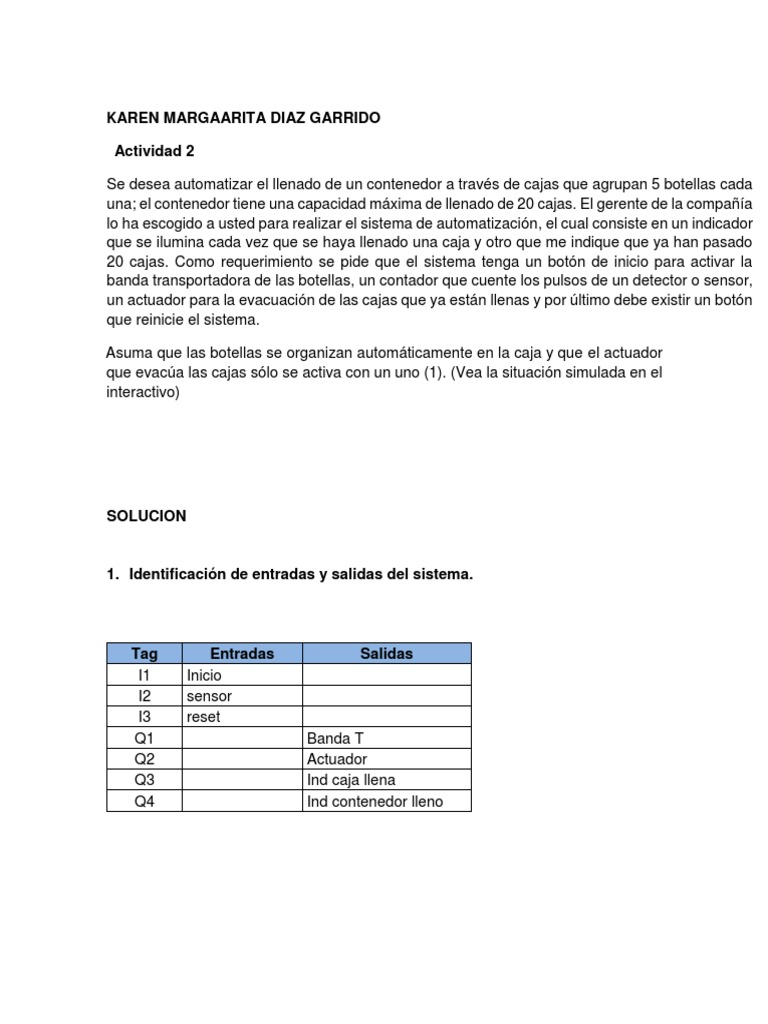 Se desea automatizar el llenado de un contenedor a través de cajas que agrupan 5 botellas cada