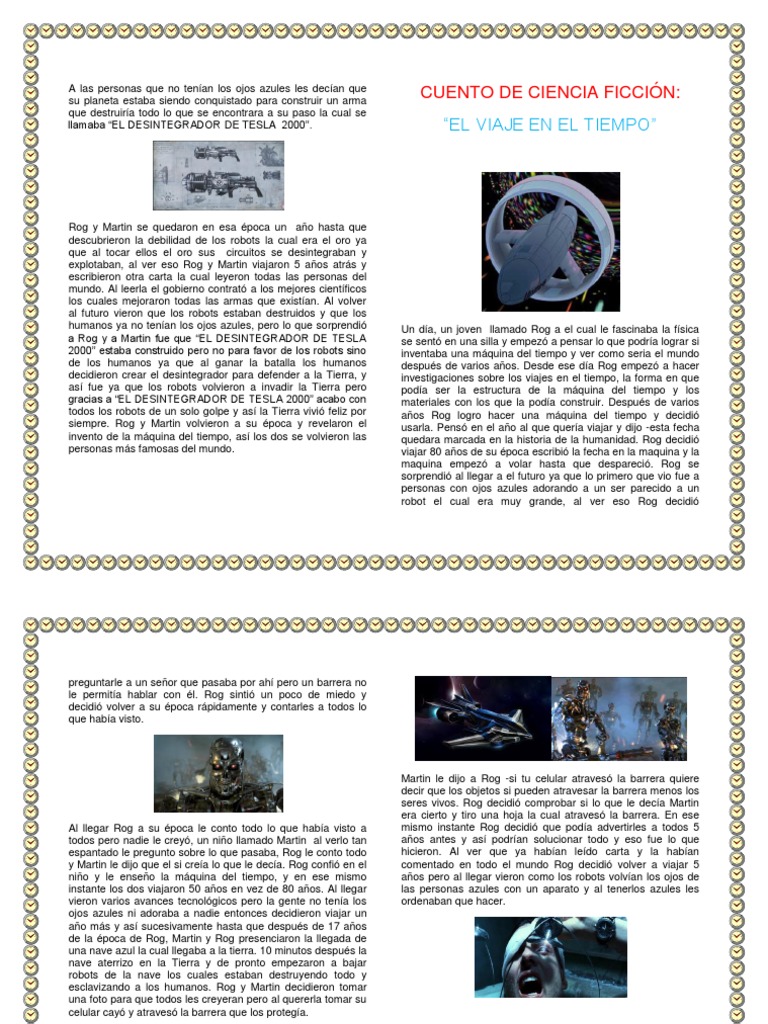 niño y le enseño la máquina del tiempo, y en ese mismo años pero al llegar vieron como los robots volvían los ojos de