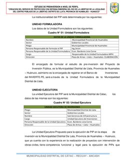 La unidad Ejecutora del PIP será la Municipalidad Distrital de Cátac, los