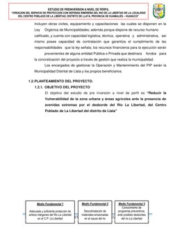 CREACION DEL SERVICIO DE PROTECCION CON DEFENSA RIBEREÑA DEL RIO DE LA LIBERTAD DE LA LOCALIDAD DEL CENTRO