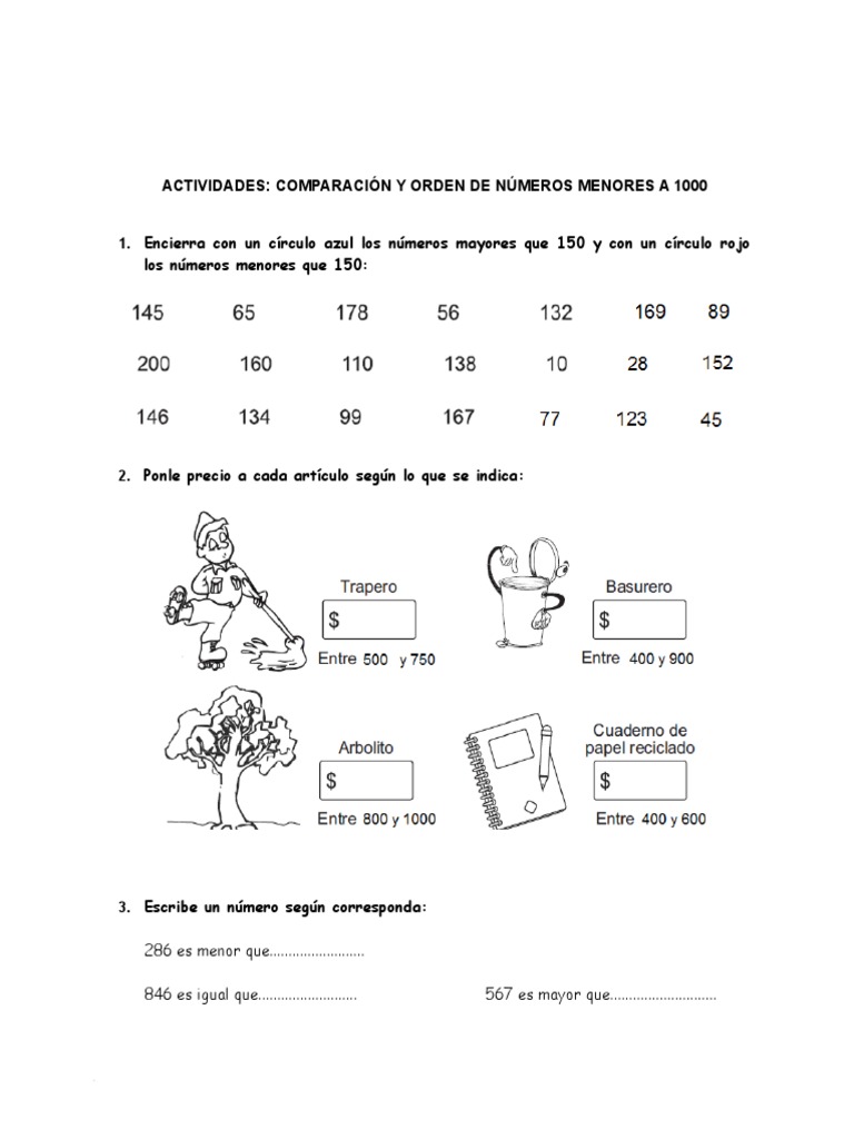 ACTIVIDADES: COMPARACIÓN Y ORDEN DE NÚMEROS MENORES A 1000
