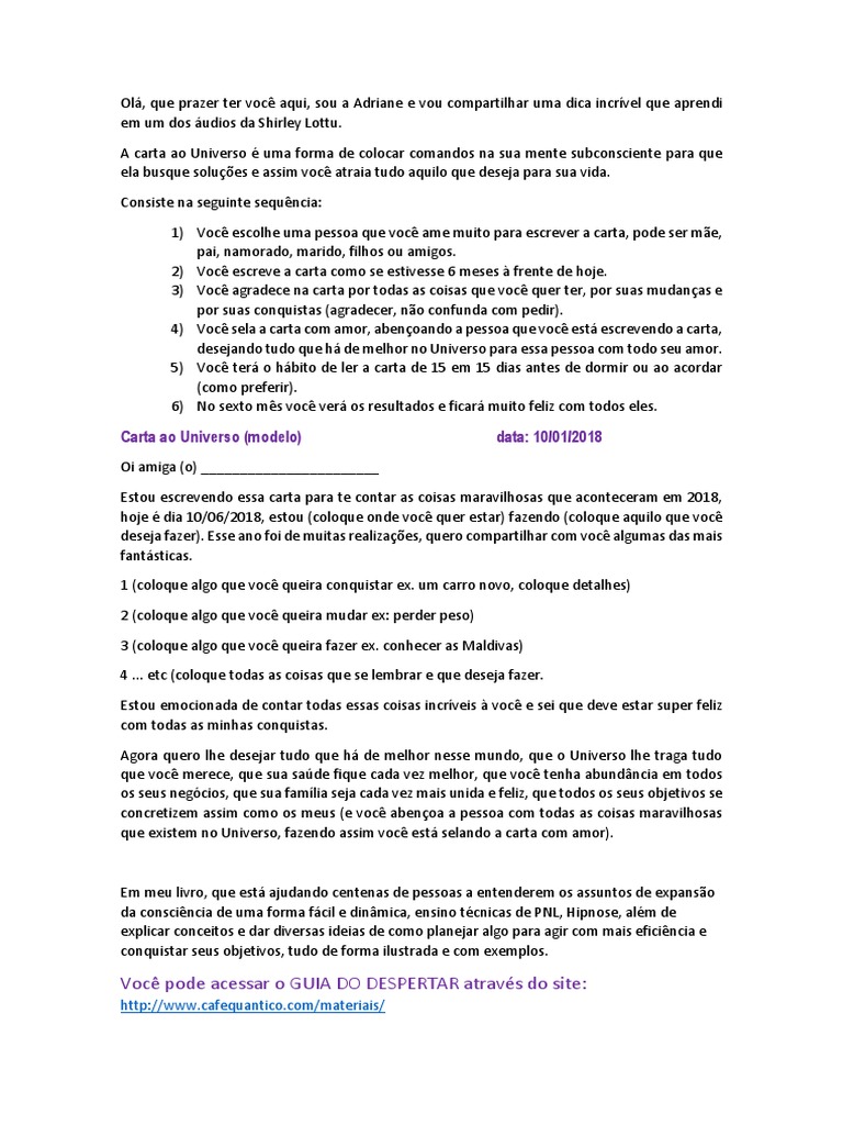 A carta ao Universo é uma forma de colocar comandos na sua mente subconsciente para que