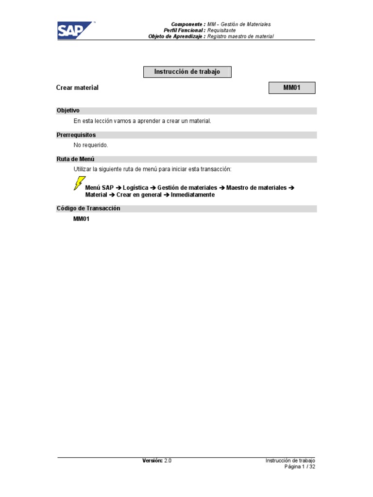 Menú SAP Logística Gestión de materiales Maestro de materiales