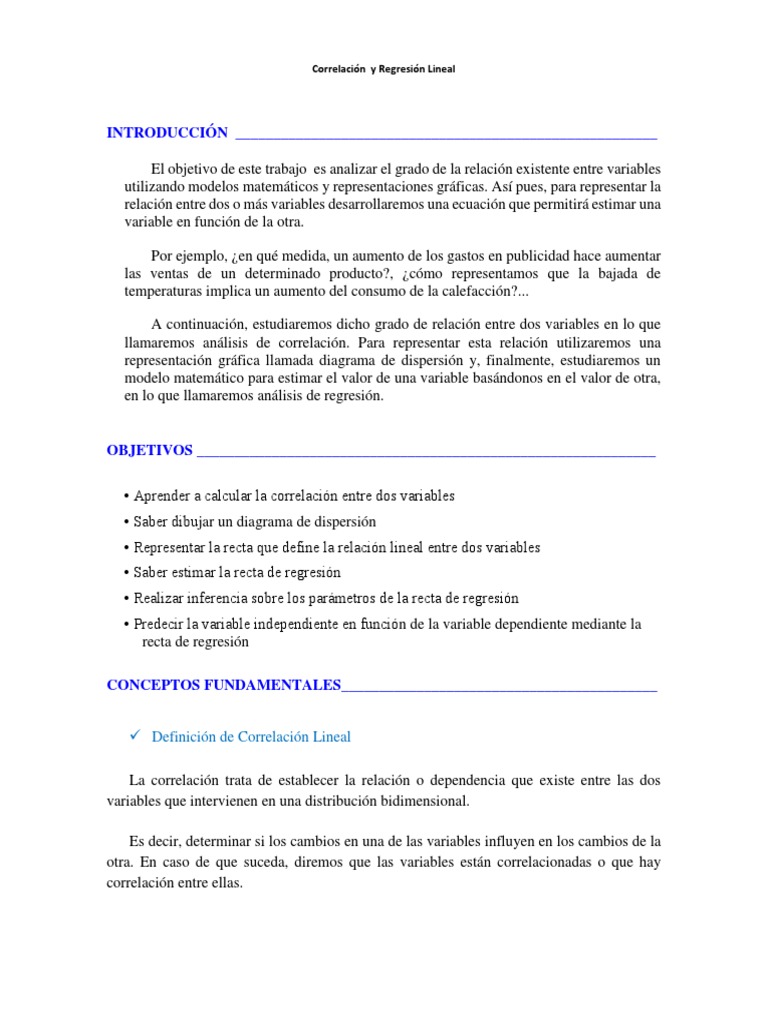 El objetivo de este trabajo es analizar el grado de la relación existente entre variables