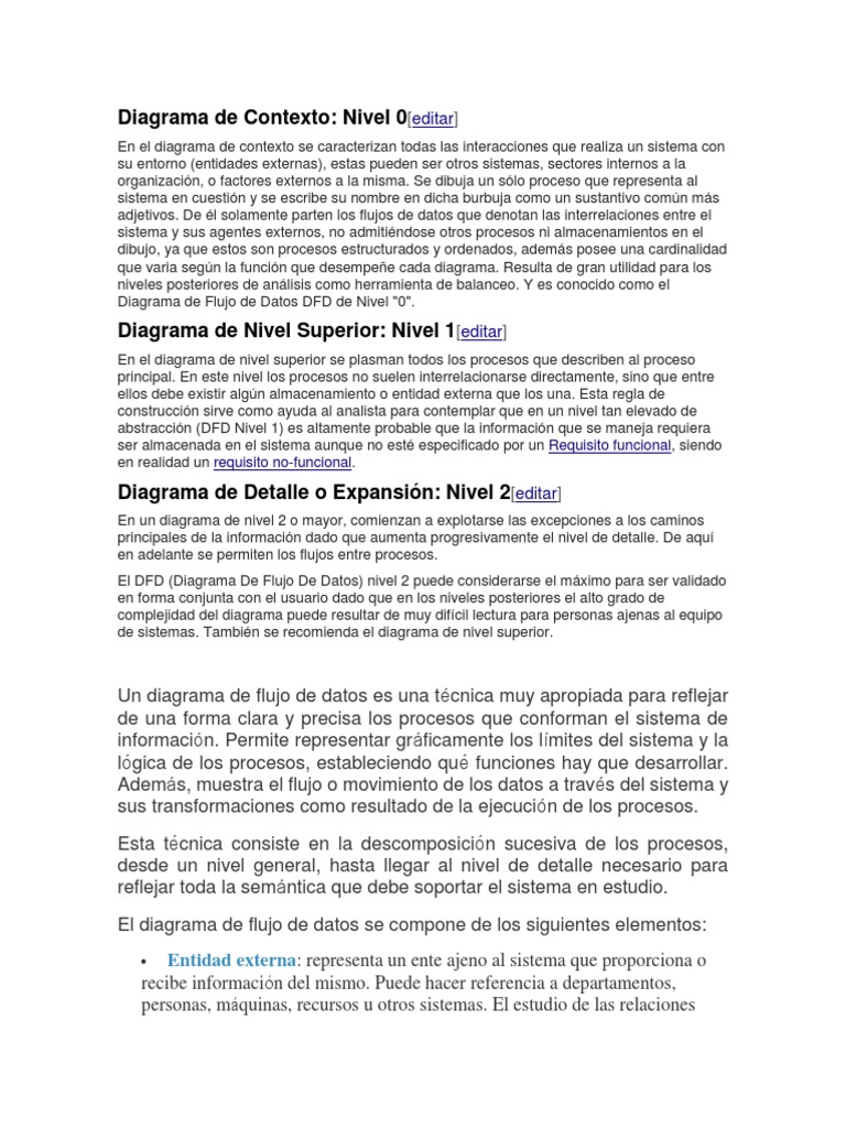 El DFD (Diagrama De Flujo De Datos) nivel 2 puede considerarse el máximo para ser validado
