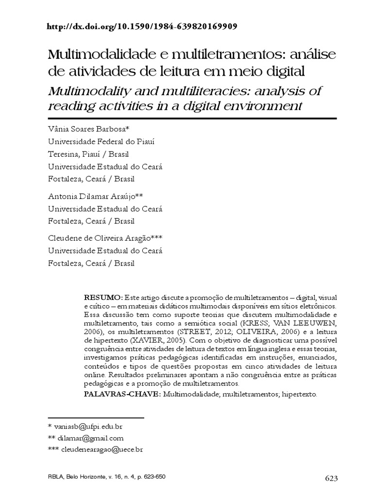 BARBOSA, V. S.; ARAÚJO, A. D. Multimodalidade e letramento visual: um estudo