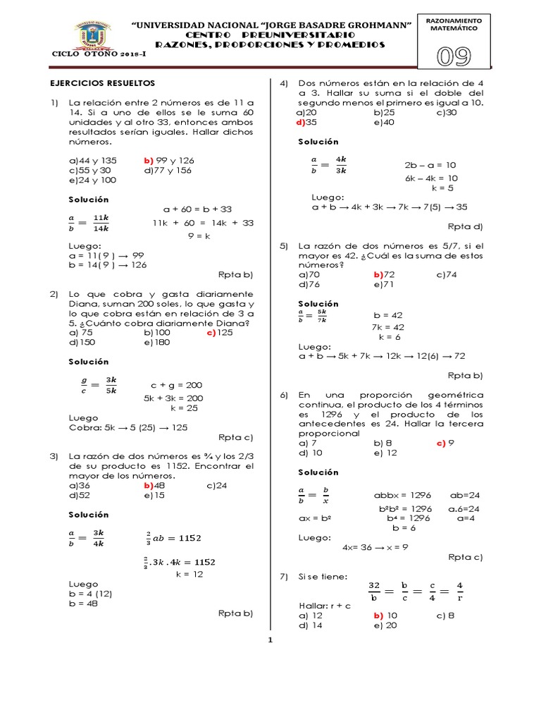 8) En una serie de 3 razones geométricas 15) El promedio de las 6 notas del curso de