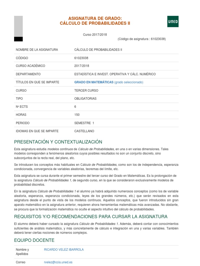 En la asignatura Cálculo de Probabilidades 1 el alumno ya habrá adquirido numerosos conceptos (como los de variable