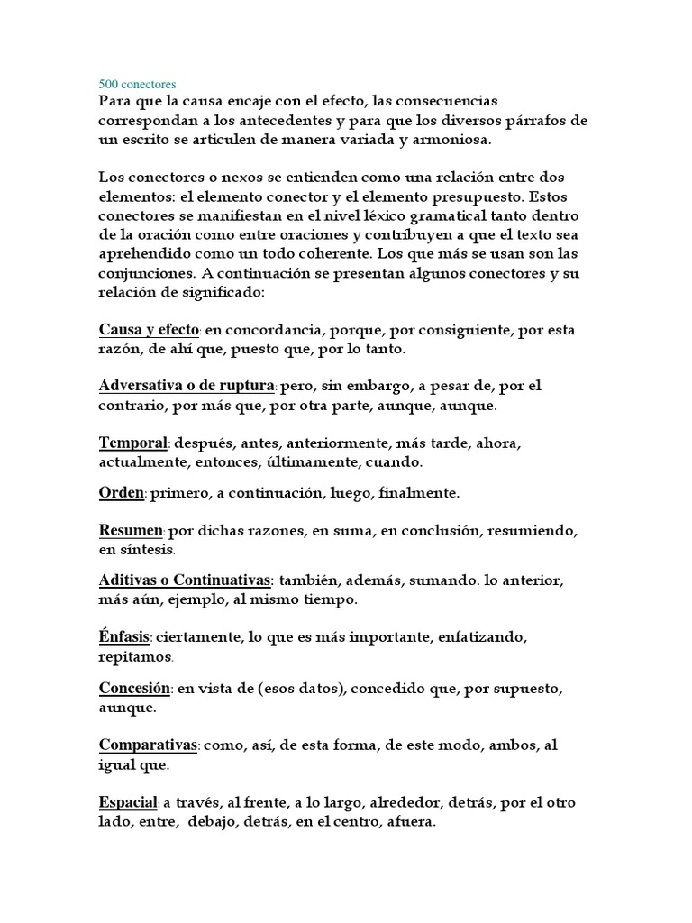 conjunciones. A continuación se presentan algunos conectores y su