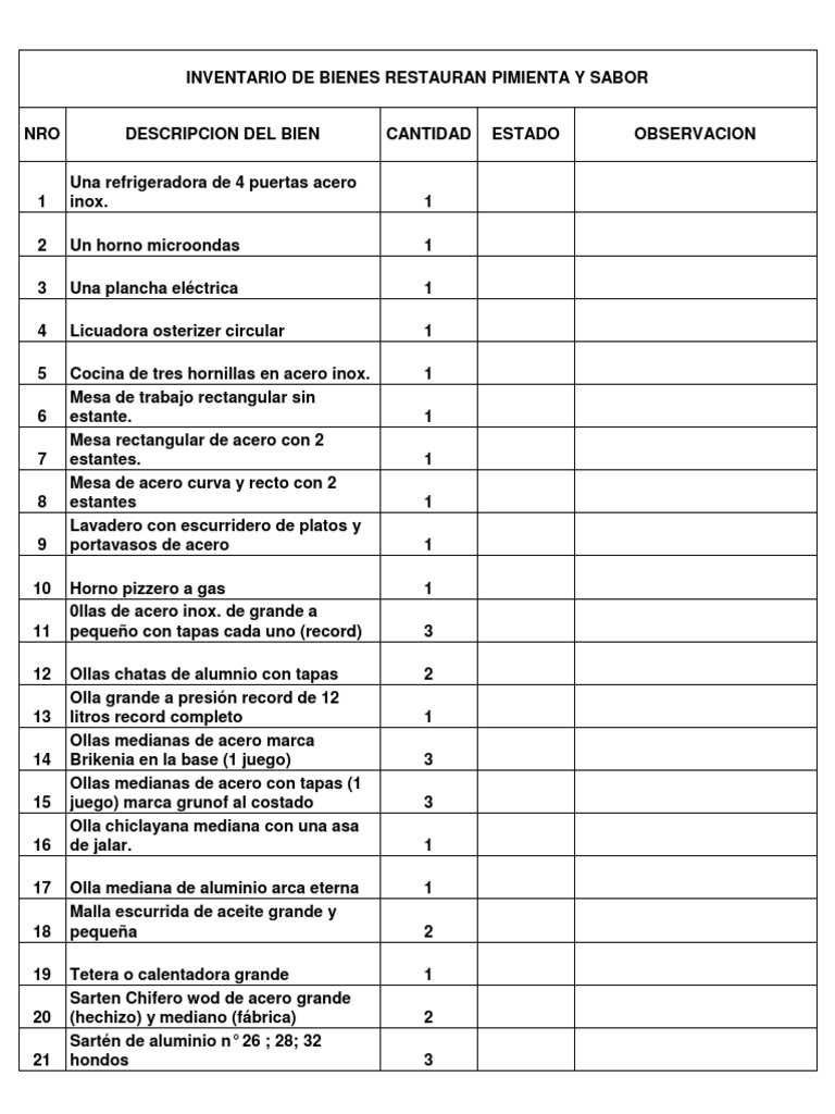 INVENTARIO DE BIENES RESTAURAN PIMIENTA Y SABOR