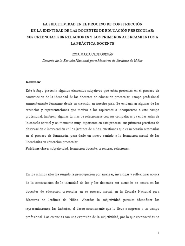 Palabras clave: subjetividad, formación docente, creencias, relaciones.