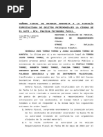 Imputación Formal del Sr. Representante del Ministerio Publico tal como lo