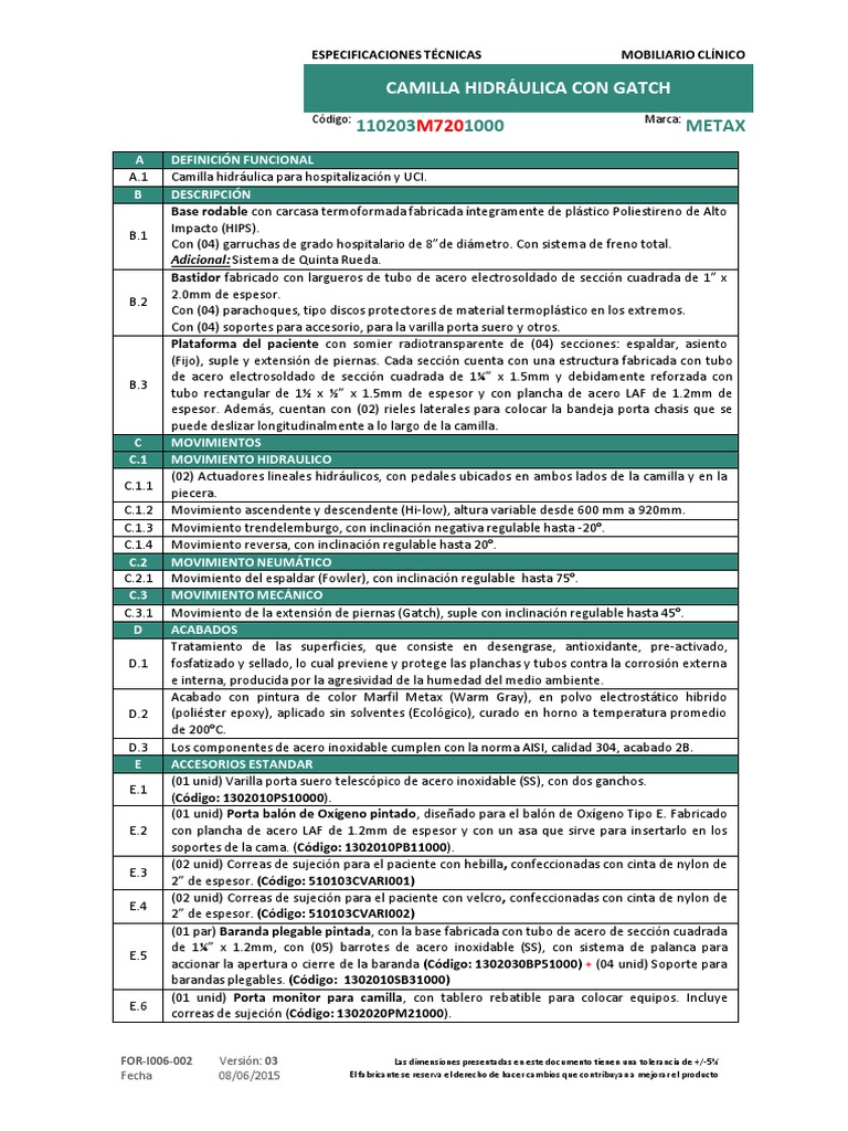 ESPECIFICACIONES TÉCNICAS MOBILIARIO CLÍNICO