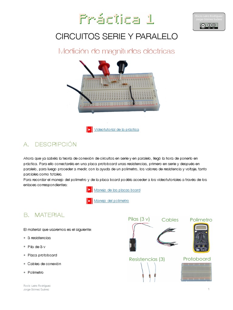 práctica. Para ello conectaréis en una placa protoboard unas resistencias, primero en serie y después en