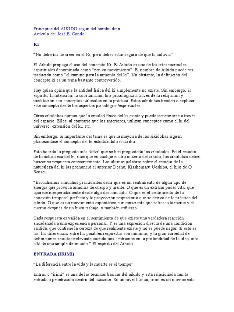 El Aikido propaga el uso del concepto Ki. El Aikido es una de las artes marciales
