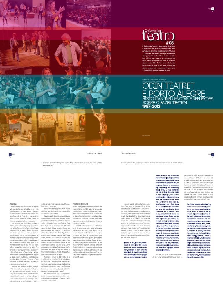 na Europa. As questões hoje (para mim e para jovens alunos do curso de Artes Cênicas da trado mais dentro das “redes”, e não dos grupos. fundamental para se confrontar com o polo guês. Atualmente, conduz uma pesquisa sistemática sobre a relação do Odin