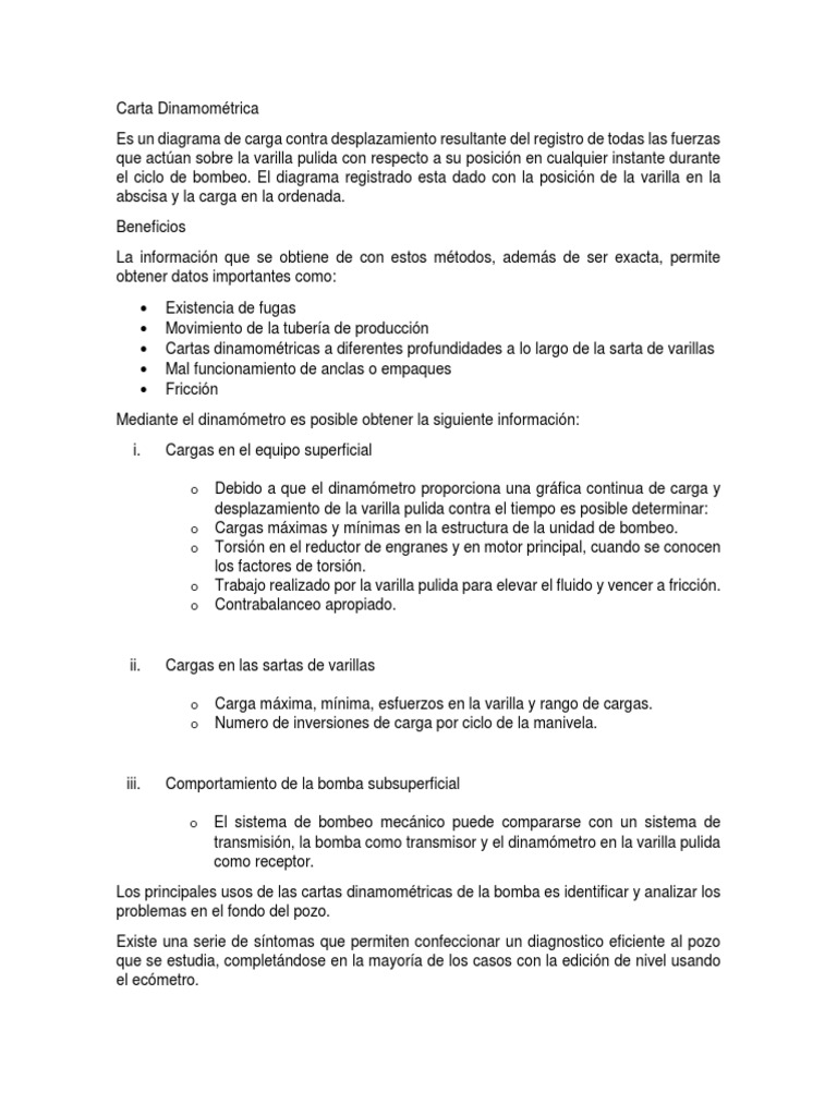 Los principales usos de las cartas dinamométricas de la bomba es identificar y analizar los