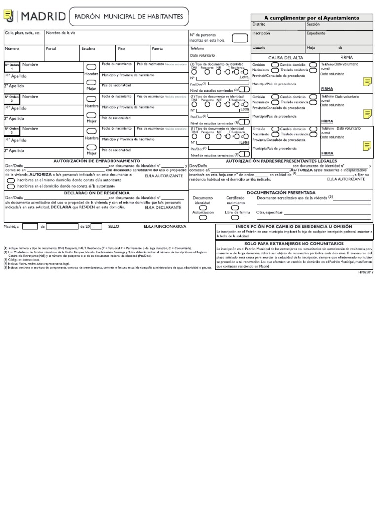 1.Si en el domicilio figuran empadronadas otras personas,deberá cumplimentar y firmar la autorización una de las mayores de edad em- Menores de edad extranjeros,nacidos en España: hasta los tres meses libro de familia o certificado de