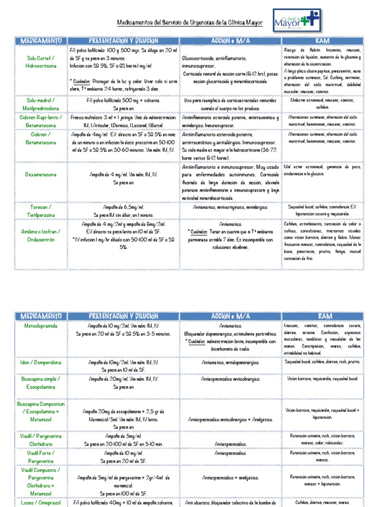 Medicamentos del Servicio de Urgencias de la Clínica Mayor