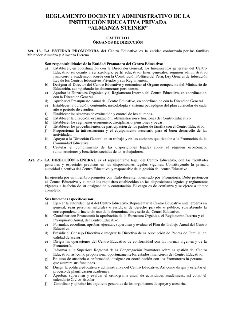 Art. 2º.- LA DIRECCIÓN GENERAL es el representante legal del Centro Educativo, con las facultades