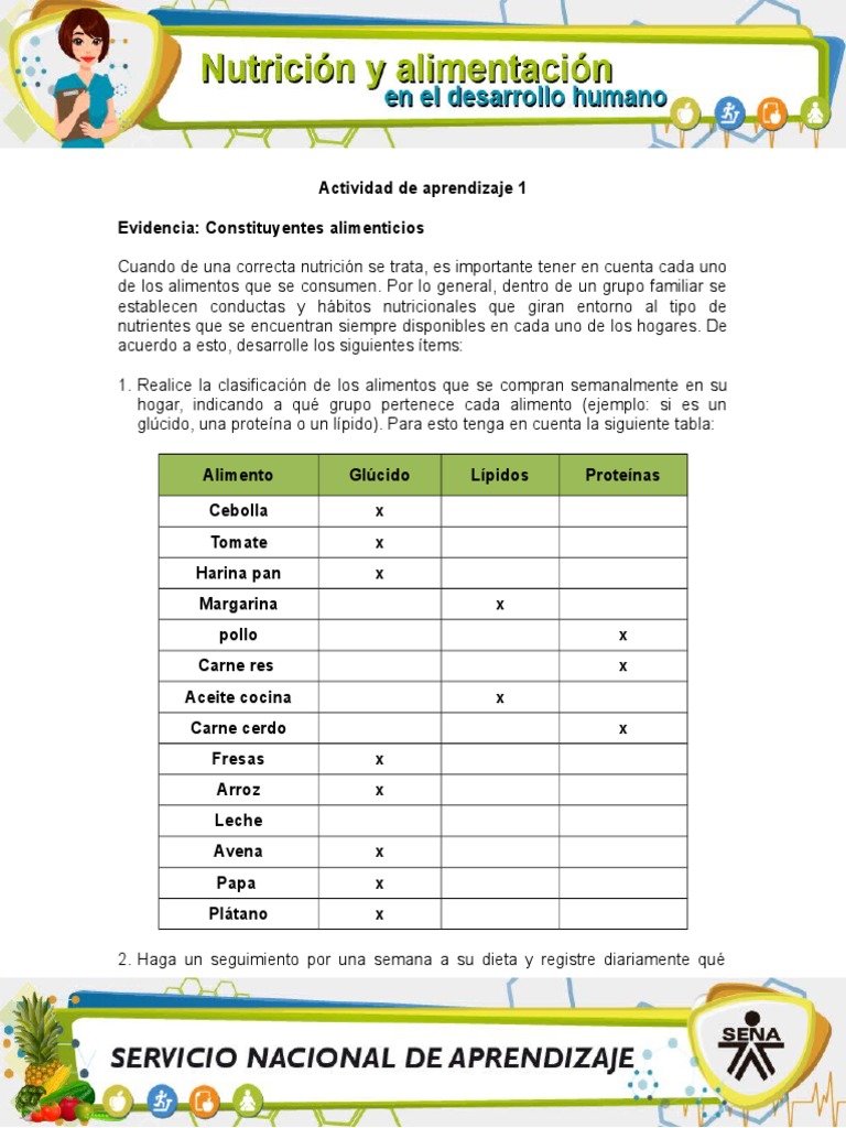 Identifica los componentes de los alimentos según su aporte nutricional.