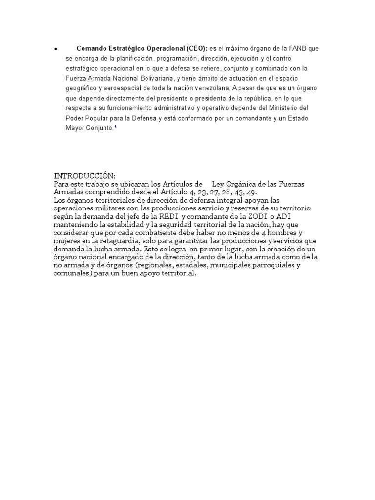 Comando Estratégico Operacional (CEO): es el máximo órgano de la FANB que