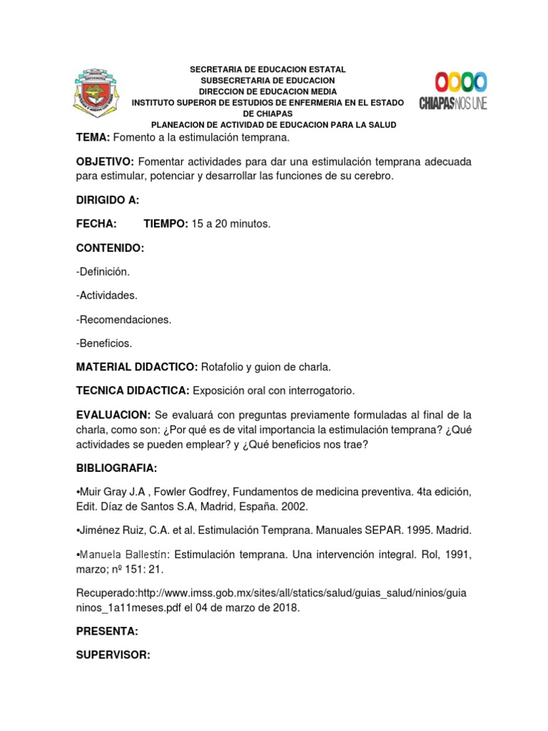 PLANEACION DE ACTIVIDAD DE EDUCACION PARA LA SALUD