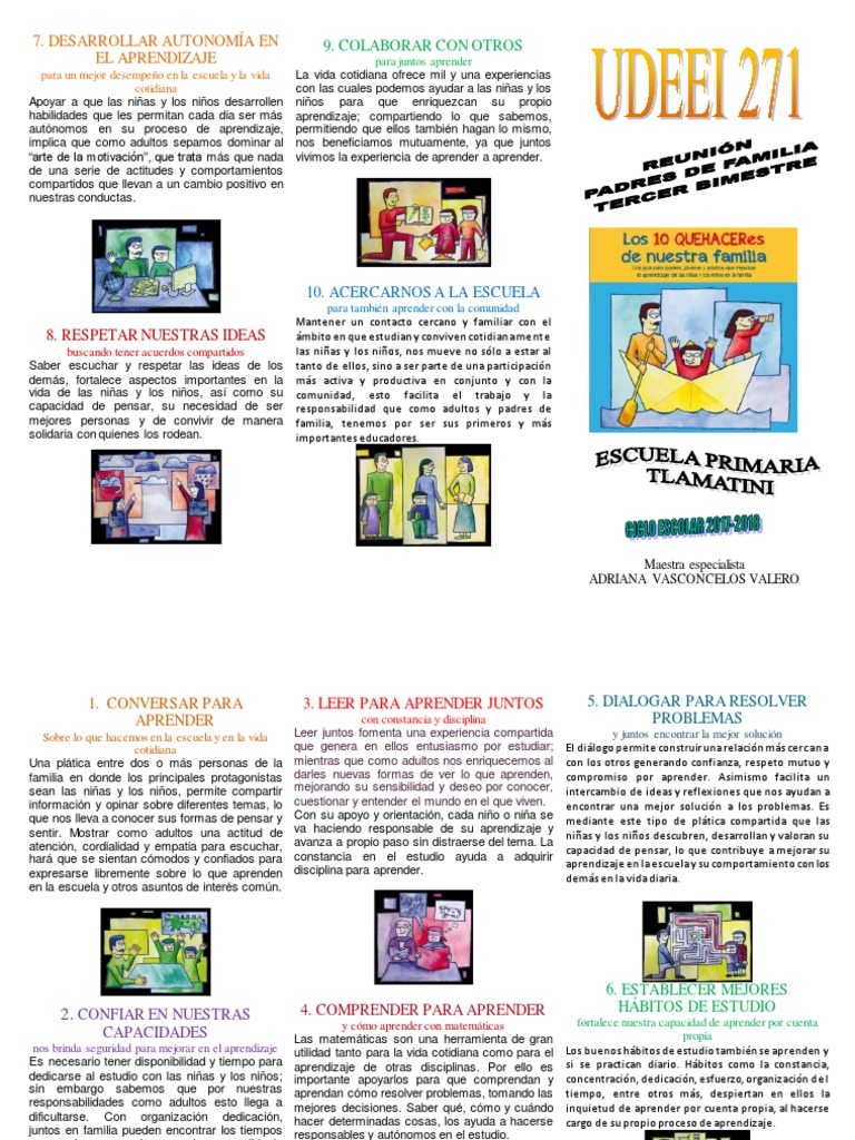 Triptico 10 Quehaceres de Nuestras Familias